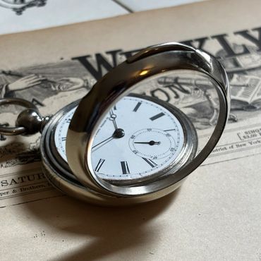 Case is a very well preserved Keystone Silveroid (nickel alloy) with minimal wear, all the snaps are nice and tight, hinges are tight and strong, covers open to 90 degrees as they should. The case is the strong point of this watch. Brand new brilliantly clear crystal has been installed, there is a speck in the crystal that came that way from the factory, it does not detract from the originality of the piece.