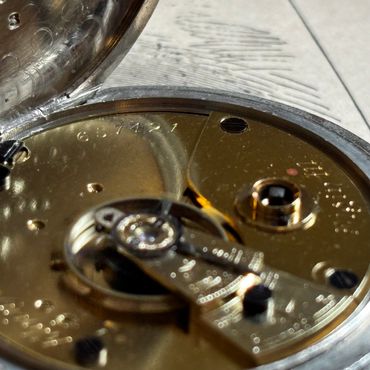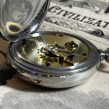 Keeps excellent time. On the timegrapher, sitting dial up, the error was six seconds slow over a 24 hour period with high balance amplitude. A new old stock blue steel mainspring provides plenty of power.
