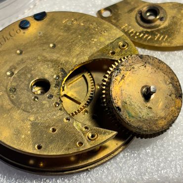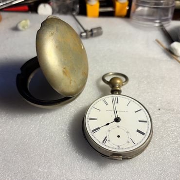 This was an extremely satisfying watch restoration, because the very heavy Fahy’s Oresilver (nickel alloy) pair-case has seen little use and remains very tight and crisp with none of the "rattle" that often effects more worn-out examples.