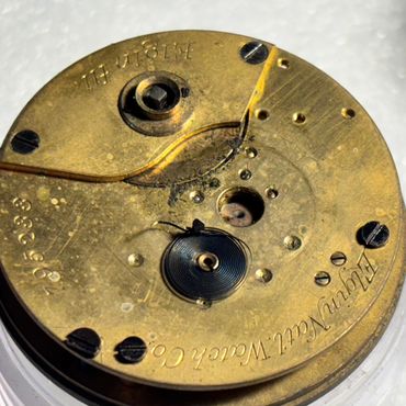 The movement runs well with great amplitude. It has the original blue steel mainspring that it came with, which has some serviceable life left, but is becoming quite ”set” and tired, and someday, maybe in a few years, could be a candidate for replacing.