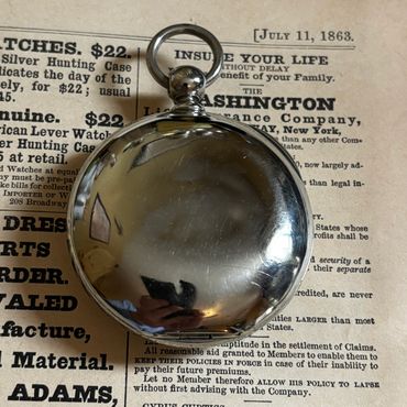 Dueber Silverine (nickel alloy) case is in good condition and everything closes and stays shut as it should. Hinges are good and crisp. The case has a few minor scratches and little dings as expected after 140 years, but still remains a very strong case sample. Really is a nice case, and the brand new, perfectly clear extra thick crystal just makes it look very sharp.